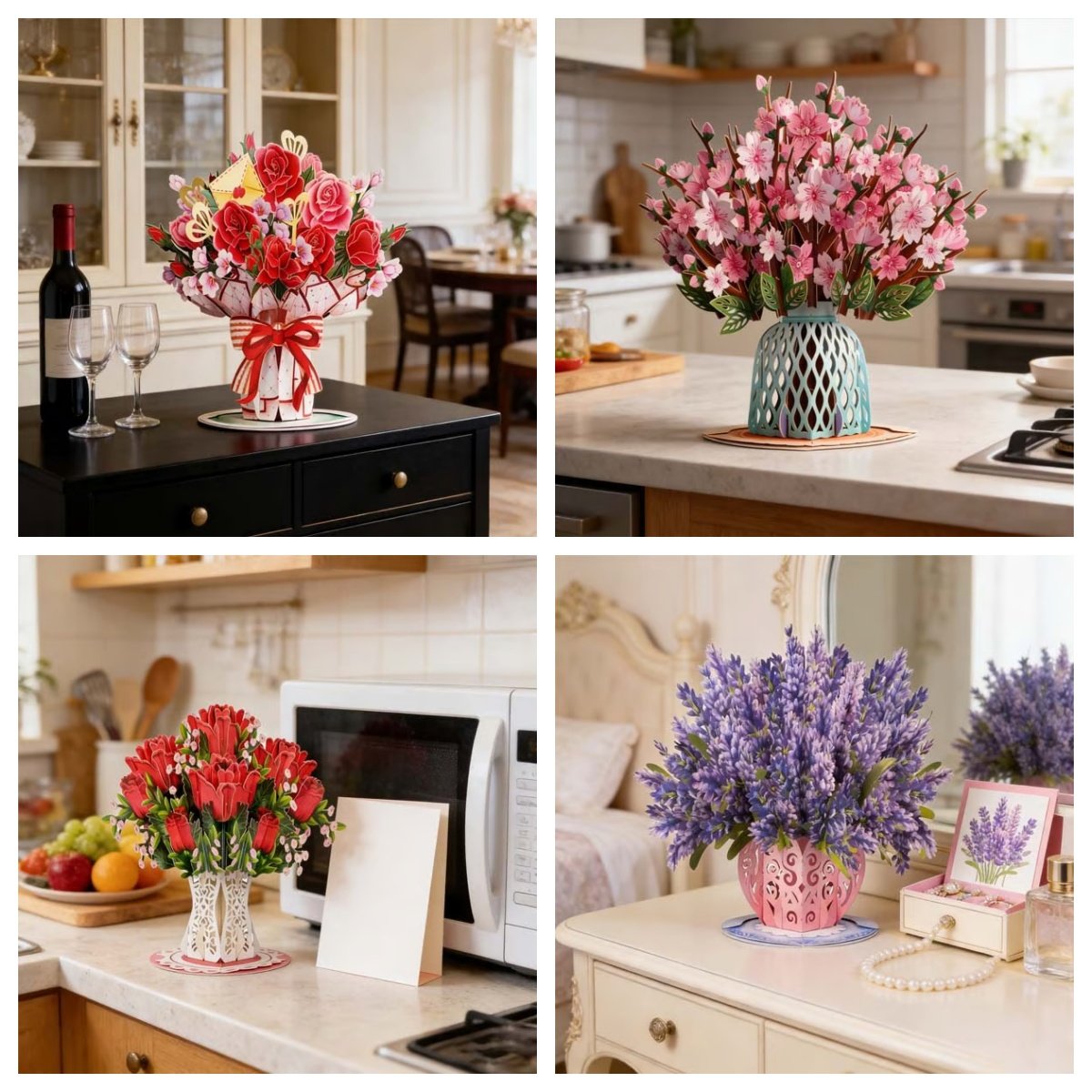 - Bouquet Types: Lovely Roses Bouquet, Valentine Bouquet Pop Up Card, Cherry Blossom Pop Up Card, Daisy Delight Pop Up Card, Lavender Bouquet Pop Up Card, Boho Pop Up Flower Bouquet Card