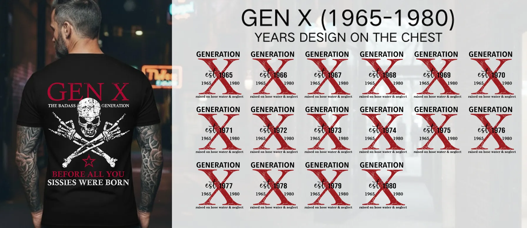 You are the trailblazers who experienced the era of cassette tapes and vinyl records, the witnesses of a time before the internet revolutionized our lives. You've not only observed the world's transformation but also shaped its future. To honor your unique journey, we present the Gen X Series Custom T-Shirts— especially for you.