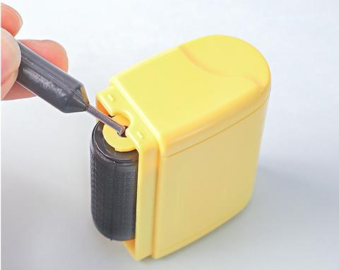 Paper can be recycled after using a roller stamp, no need for a shredder. In addition, a pre-inked mount eliminates the use of a separate, messy ink pad.